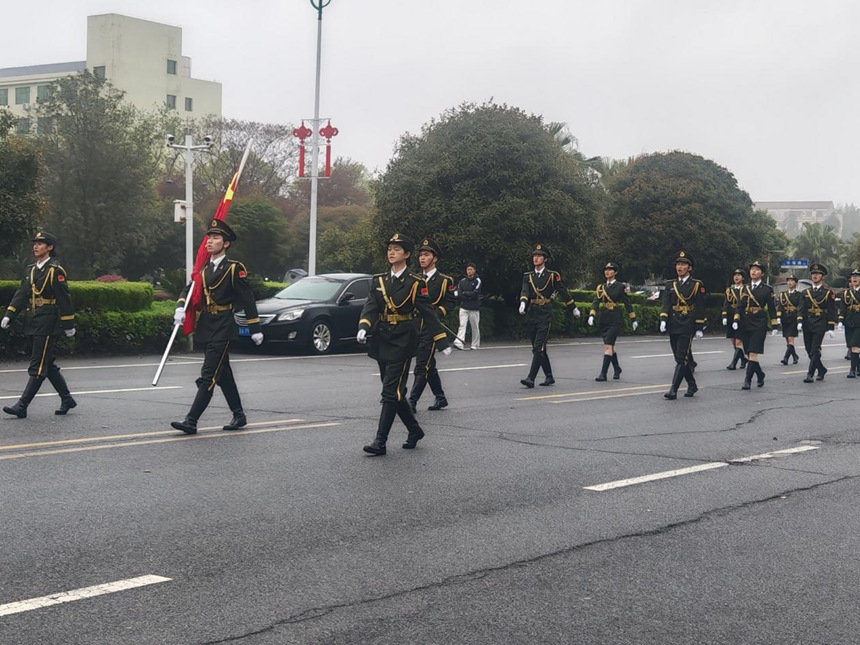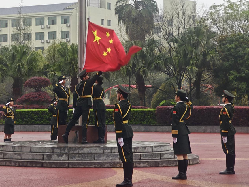 清晨时分,广场肃穆宁静。国旗护卫队队员精神饱满、步伐坚定,迈着整齐有力的步伐护送国旗入场。随着雄壮的《义勇军进行曲》奏响,五星红旗冉冉升起、迎风舒展。全体同学肃立注目,在庄严的氛围中缅怀先烈功绩,赓续红色血脉,坚定报国初心。