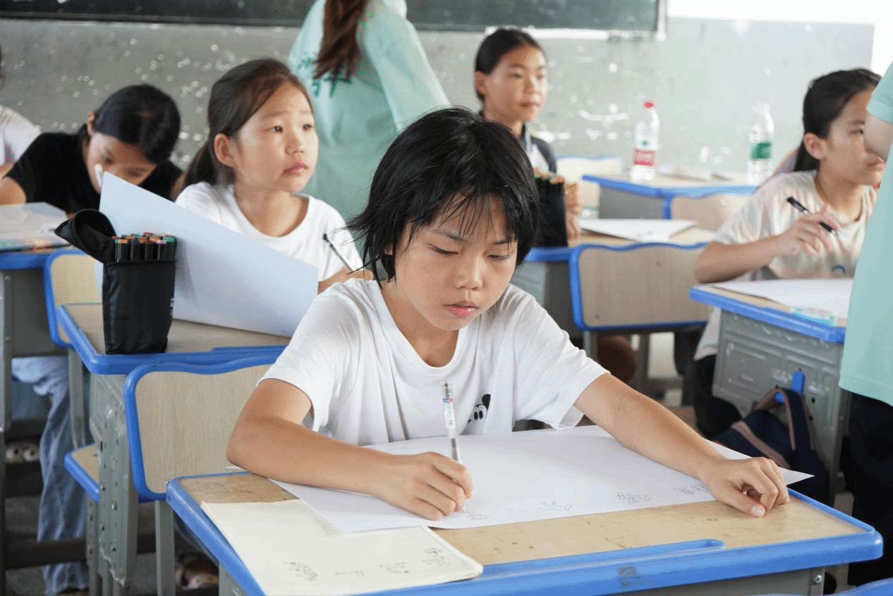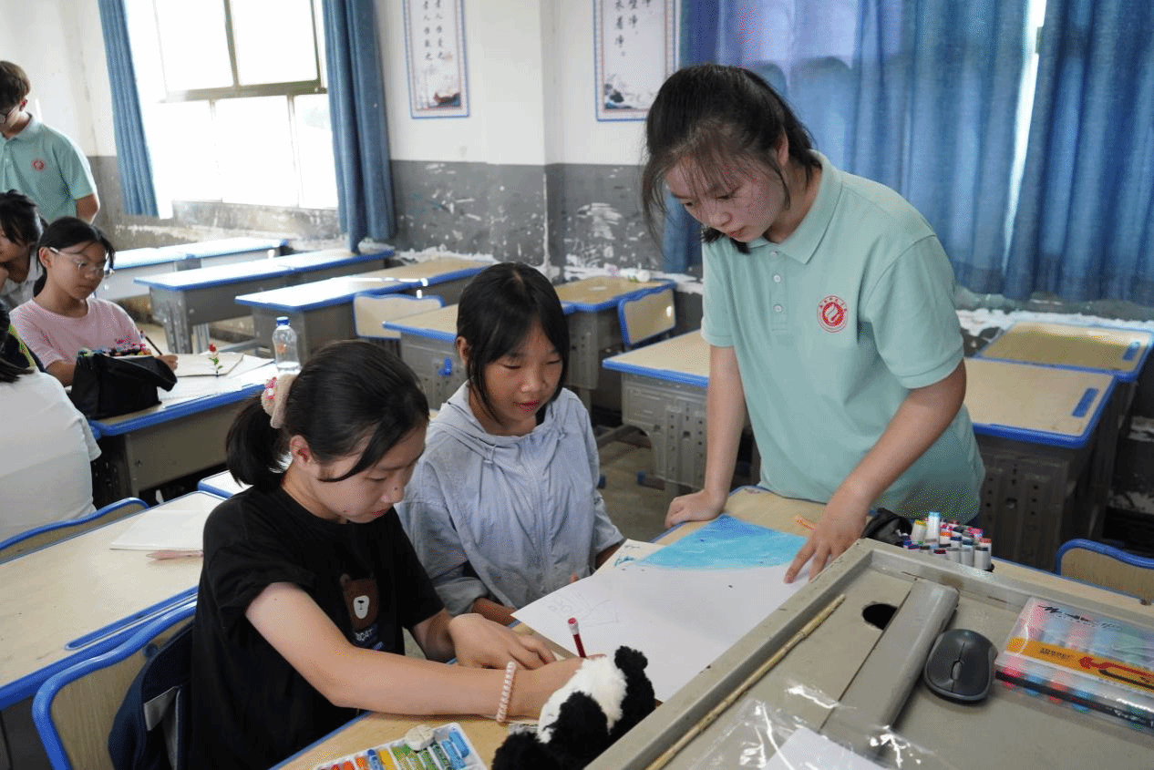 接着,一场充满童趣与创意的绘画活动开始了。在志愿者的指导下,孩子们拿起画笔,在画纸上描绘出心中理想的卫生乡村模样:干净整洁的街道、垃圾分类的场景、人们健康快乐的生活画面……每一幅画都饱含着他们对美好家园的向往。绘画结束后,孩子们自豪地展示自己的作品,用童真的语言向周围的同学和老师讲解创作思路。这些凝聚着孩子们心血与期待的作品,被张贴到学校门口,瞬间成为校园里一道亮丽的风景线。一幅幅色彩斑斓的画作,不仅装点了校园环境,更时刻提醒着全校师生和乡村村民关注环境卫生,共同为建设美丽宜居的乡村贡献力量。