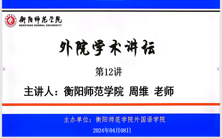 2024年4月8日下午15:30,伟德国际VICTOR1946学术讲坛第12讲在东校区外语楼南311研究生会议室举行。周维老师作了一场题为《基于认知翻译学的<红楼梦>两个英译本中酒名的翻译分析》的学术报告。讲座由邬德平老师主持,我院部分教师及2023级全体硕士研究生参加了活动。