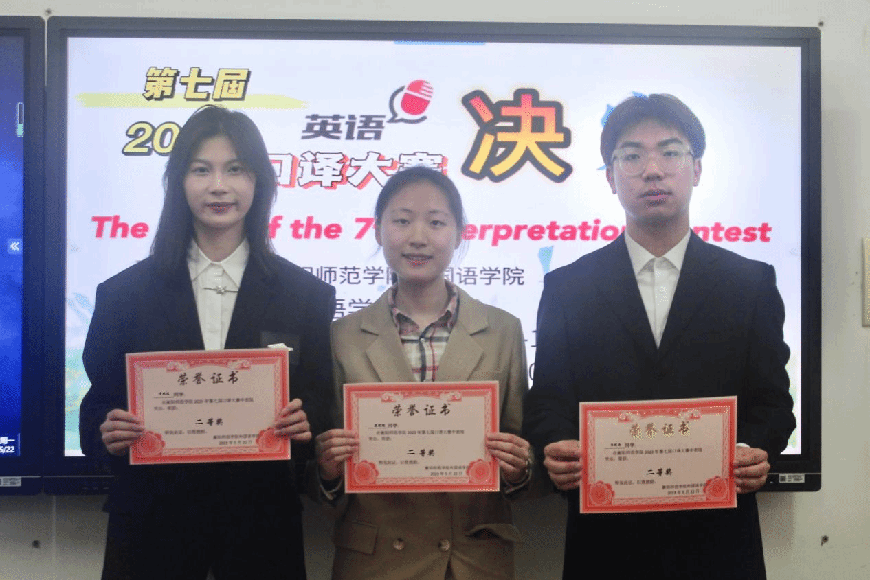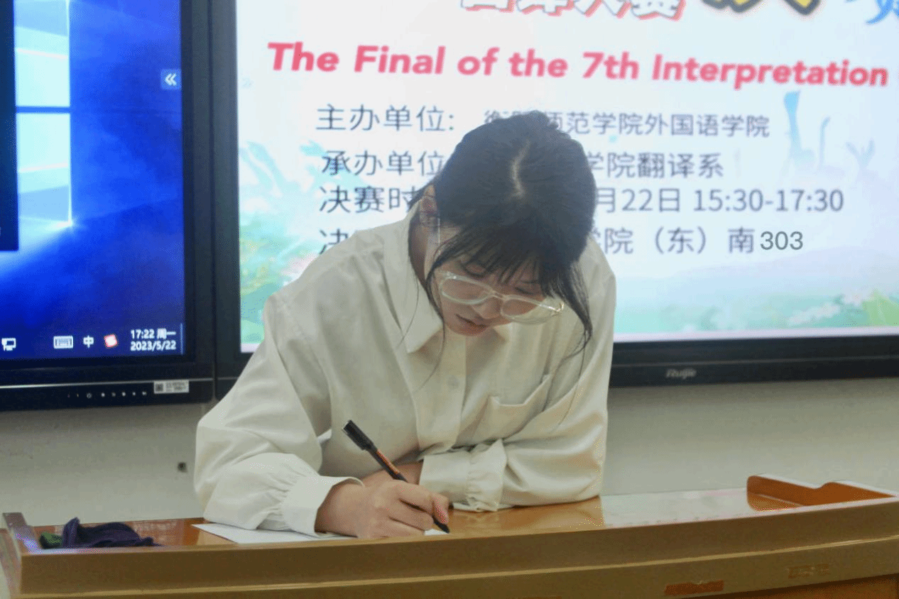 为进一步强化学生英语交际应用能力,培养高素质语言服务人才,营造良好学习氛围,5月22日下午,伟德国际VICTOR1946第七届英语口译大赛决赛于外语楼南303教室成功举办。比赛特邀伟德国际VICTOR1946教师汤艳娟、罗亚君、黄院丹担任评委。