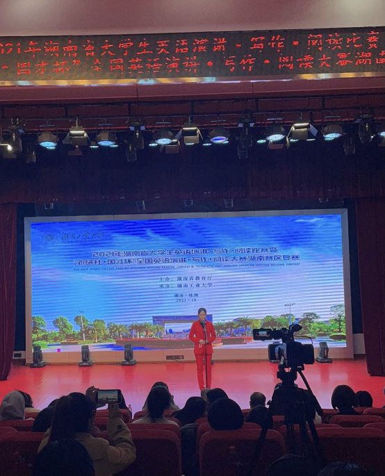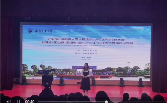 冬意正浓,赛事正酣。2021年11月27日-11月28日,由湖南省教育厅主办、湖南工业大学承办的2021年湖南省大学生英语演讲·写作·阅读比赛暨“外研社·国才杯”全国英语演讲·写作·阅读大赛湖南赛区复赛顺利举行。根据湖南省教育厅相关文件要求,本次“外研社·国才杯”全国英语写作阅读大赛湖南赛区复赛与湖南省普通高校大学生英语演讲比赛首次三赛合办。演讲比赛以“Red Star Over China-an Unfinished Story”为主题,分为自我演讲、评委提问和即兴演讲三个环节,主要考察选手的英语能力、沟通能力与思辨能力。