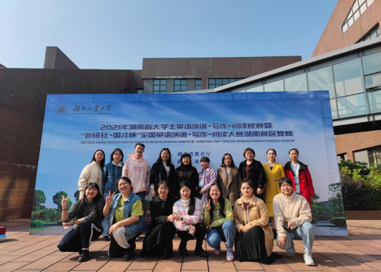 我校对此次比赛极其重视,精心筹备、积极参与,派出了9名选手组成的代表队参赛,由外语系黄梅老师担任领队,言捷智老师、罗亚君老师、汤燕娟老师、刘萍老师做选手的指导老师。