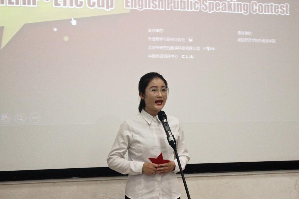大赛伊始,贺鸿莉副院长为大赛致辞。她指出,在去年的湖南省大学生英语演讲比赛中,我校演讲团队取得两个一等奖、两个二等奖、两个三等奖的好成绩,希望今年的选手们继续努力,再创辉煌。并希望所有参赛选手应深入挖掘Red Star内涵,结合自身经历,贴合时代主题,赛出风采,赛出水平。