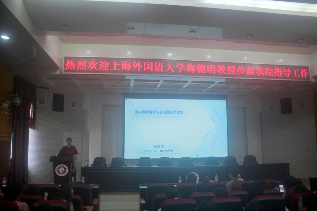 2021年5月14日,上海外国语大学博士生导师梅德明教授应邀在外语楼北311 举行了题为“核心素养培育与全球胜任力发展”的讲座。伟德国际VICTOR1946院长贺学耘及所有在校院领导出席了此次活动。伟德国际VICTOR19462018级英语(师范)专业学生聆听了讲座。衡铁一中、衡阳市外国语学校、珠晖区酃湖中学的英语老师应邀参加。此次活动由伟德国际VICTOR1946副院长谢彩虹主持。