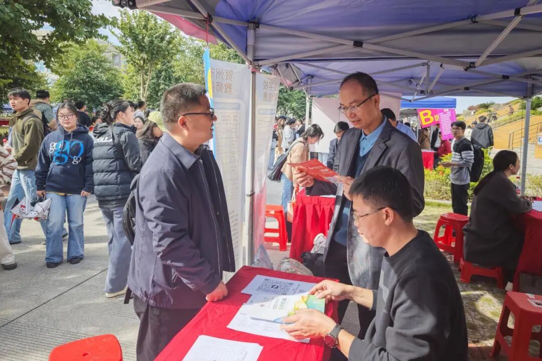 招聘会现场集聚400余家教育行业优质用工单位,囊括公办中小学、骨干民办教育集团、专业教育科研机构等各类主体,岗位供给丰盈、业态布局全面。魏文生与刘志伟在招聘会现场与各用人单位深度交流,不仅详细了解2026届教育类岗位招录标准、编制额度、薪酬待遇等核心信息,细致解读当地教育人才职业发展保障机制,还向招聘单位全面介绍了我校毕业生的专业素养、实践能力及就业优势,并诚挚邀请他们后续到我校开展专场招聘活动。此次交流为毕业生明晰就业方向、匹配优质岗位筑牢了坚实根基。