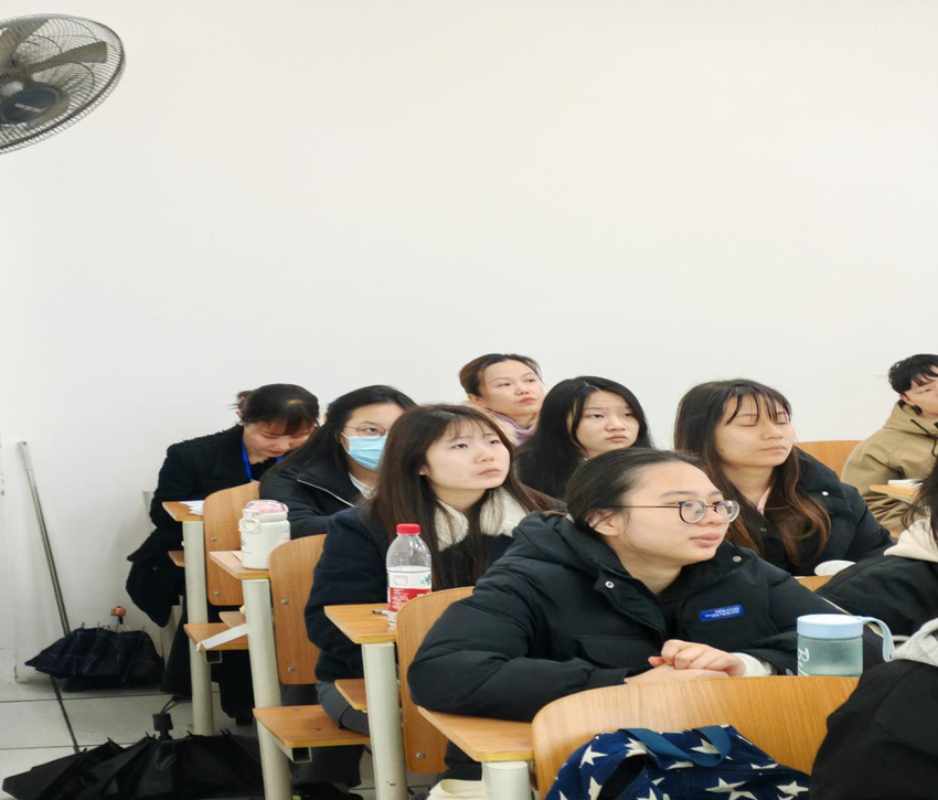 唐艳首先深入教学一线,随机走进外语楼南611教室,听取周炎晖老师为2023级翻译2班讲授的《德语Ⅱ》课程。听课中,她细致察看课堂教学全程,记录教师教学思路、课堂设计及学生听课状态、纪律表现。课堂上,周老师备课充分、讲解条理清晰,结合翻译专业融入德语应用技巧,教学方法实用;学生专注听讲、积极互动,良好的课堂氛围得到了唐艳的充分肯定。课后,她与授课教师简要交流,赞许其教学亮点并为后续教学优化提出指导性建议。