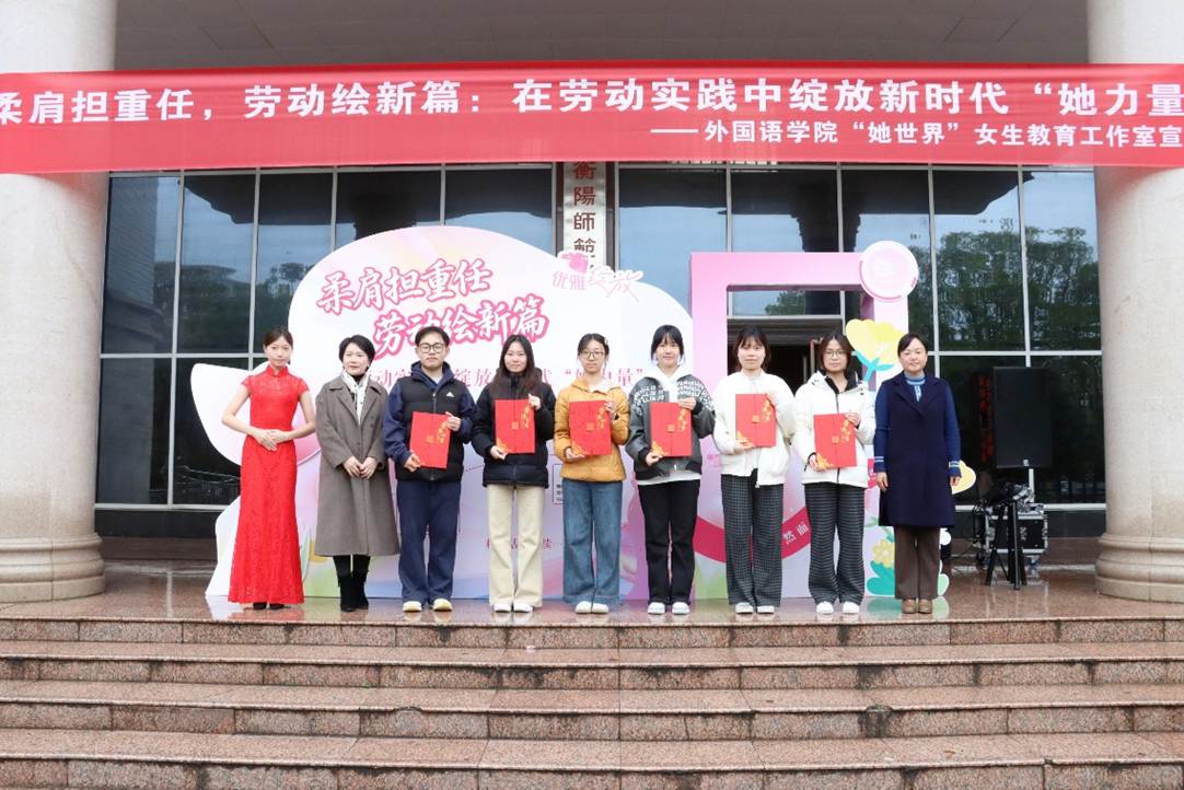 随后,学院领导依次为“耘艺绘彩——手抄报活动”与“耘物焕新——旧物改造活动”获奖的同学进行颁奖。获奖同学们以巧手与创意,将环保理念、艺术表达与女性劳动者的事迹深度融合,既展现了当代大学生的责任感与创造力,也致敬了女性劳动者的坚守与力量。