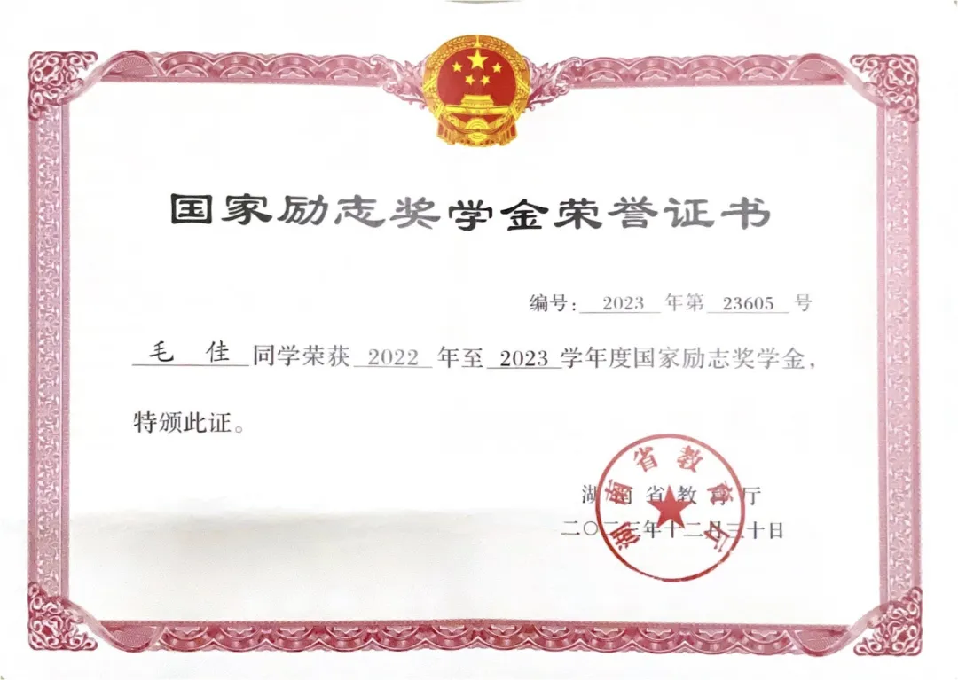 2023年获国家励志奖学金;