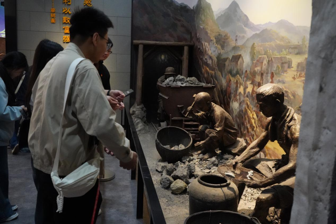 随后学生党员们怀着无比崇敬的心情迈入水口山工人运动纪念馆。通过一张张泛黄的历史照片、一件件珍贵的革命文物、一段段详实的文字资料,生动再现了水口山工人运动从萌芽到壮大的光辉历程。从早期工人在压迫下的苦难生活,到工人阶级觉醒后的英勇抗争,再到震撼全国的水口山工人大罢工取得胜利,这段历史如同一部波澜壮阔的画卷,展现了革命先辈们不畏强暴、敢于斗争的革命精神。党员们驻足凝视,认真聆听,深刻感受到了革命先辈们为了民族独立和人民解放,不惜抛头颅、洒热血的伟大情怀。